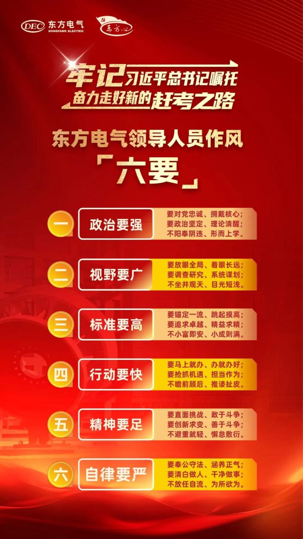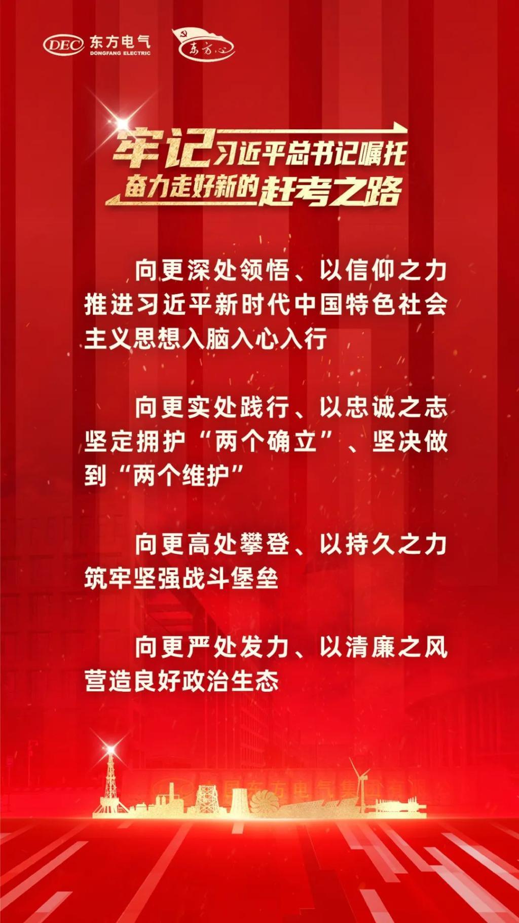 各级党组织和全体党员干部职工务必要以“东方心”党建品牌为引领,以党建“三年攀高计划”“登高而招”为牵引,向更深处领悟,向更实处践行,向更高处攀登,向更严处发力,接续奋斗、勇毅前行,形成全集团共担使命、共谱新篇、携手奋进、万马奔腾的生动局面,以人生就是搏的“稳”“进”“立”为全国大局作出新的贡献。